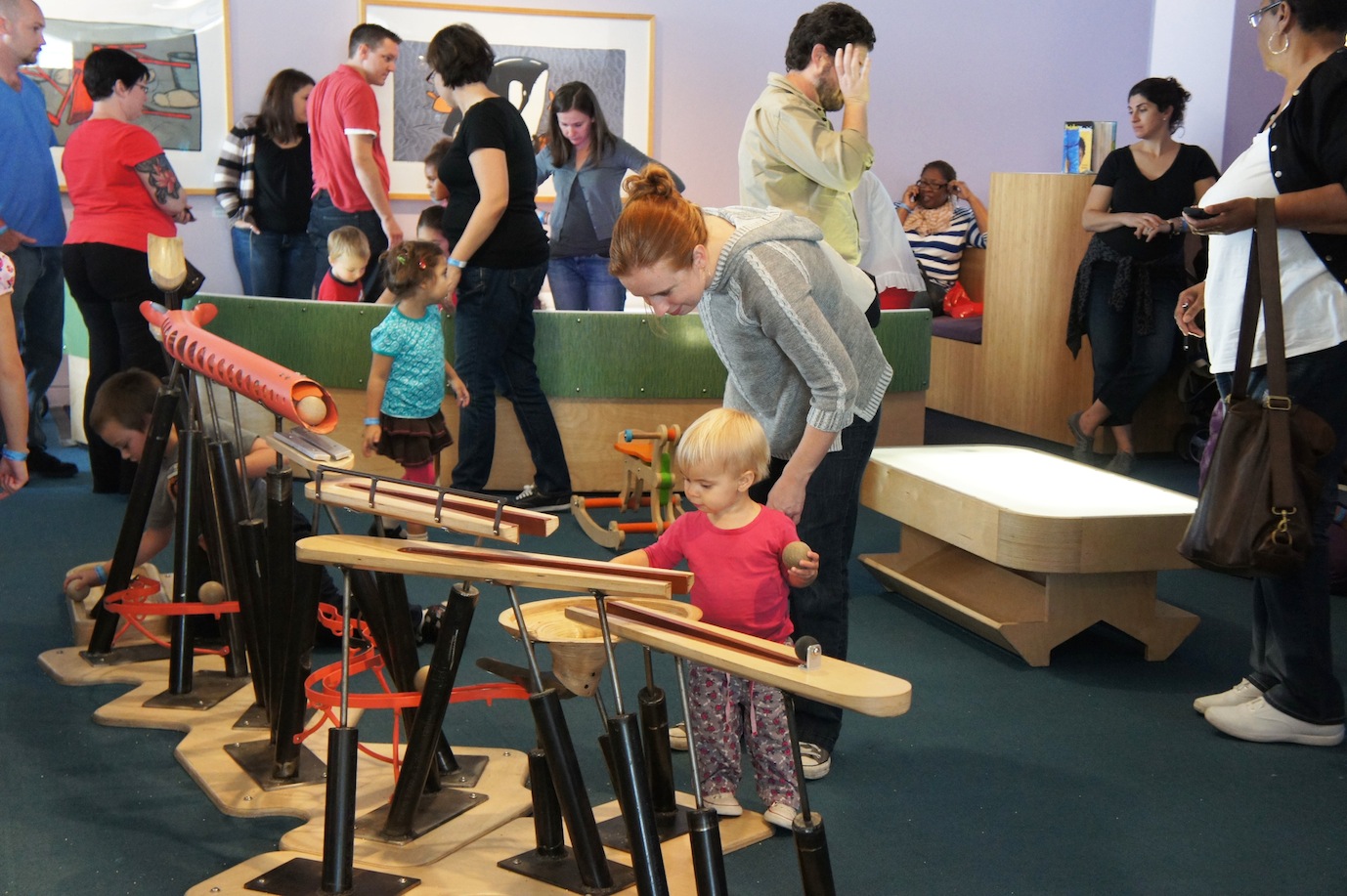 The Nursery is a beautiful "green" space for infants, toddlers and their families filled with soft colors, inviting shapes and natural materials. Families enjoy both quiet, thoughtful play and active, creative play inspired by exhibits, activities and books that engage young minds and bodies. Young visitors can arrange colorful pegs, play with trains and blocks, and paint with water. Parents have dedicated Nursing and Resource Areas with current information on child development, support services and family fun.
